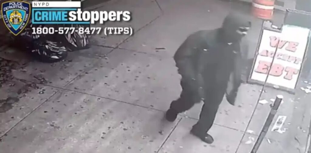 La institución del orden dijo que el sospechoso entró al establecimiento comercial usando gafas de sol, un pañuelo negro, una sudadera con capucha negra, una chaqueta negra, jeans negros, zapatillas negras y guantes quirúrgicos azules, captado en cámara de seguridad. Las autoridades despacharon una foto.