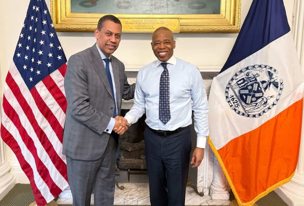 El presidente del Consejo Directivo del Instituto Dominicano de las Telecomunicaciones (INDOTEL), Guido Gómez Mazara, sostuvo un encuentro con el alcalde de la ciudad de Nueva York, Eric Adams, quienes abordaron temas clave relacionados con la ciberseguridad y el uso de soluciones tecnológicas para mejorar la calidad de vida de los ciudadanos.