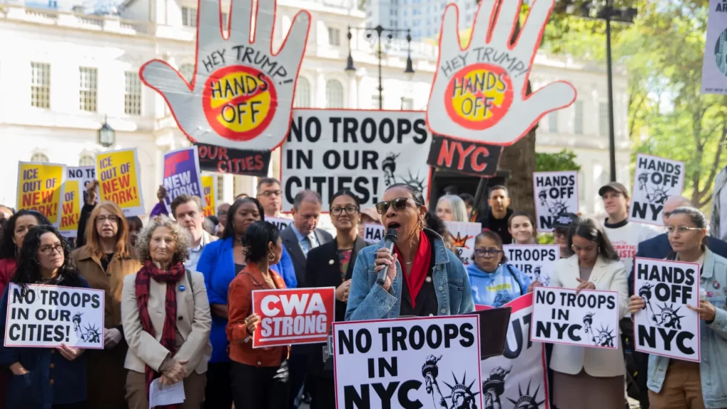 Por ello, una coalición de organizaciones comunitarias, sindicales y de defensa, además de líderes electos, religiosos y organizaciones sindicales conformaron este jueves en la ciudad de Nueva York, el movimiento ‘Manos Fuera de NYC’, el cual estructura no sólo una plataforma de “resistencia no violenta”, en caso de que se concrete alguna movilización militar. Sino que se convierte en una acción para apoyar a las ciudades que enfrentan esta estrategia federal.