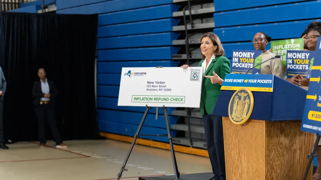 La gobernadora Hochul ha presentado estas ayudas como un “reembolso” a los neoyorquinos, debido a que el estado percibió ingresos por impuestos sobre las ventas superiores a los proyectados, en un contexto de incremento inflacionario en los últimos años.