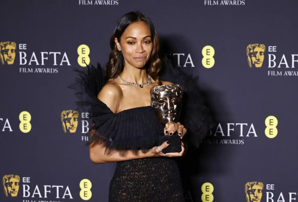 “El mayor reto creativo” de toda la vida de Zoe Saldaña ha sido ‘Emilia Pérez’. Así lo ha expresado durante el enérgico discurso que ha dado cuando, visiblemente emocionada, ha recogido el BAFTA a mejor actriz de reparto.